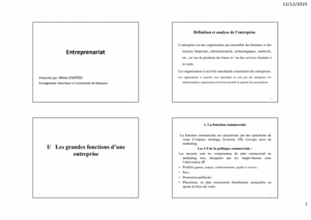 Synthèse complet de cours " entreprenariat " pour M2 QPSA de département biologie, selon son programme.