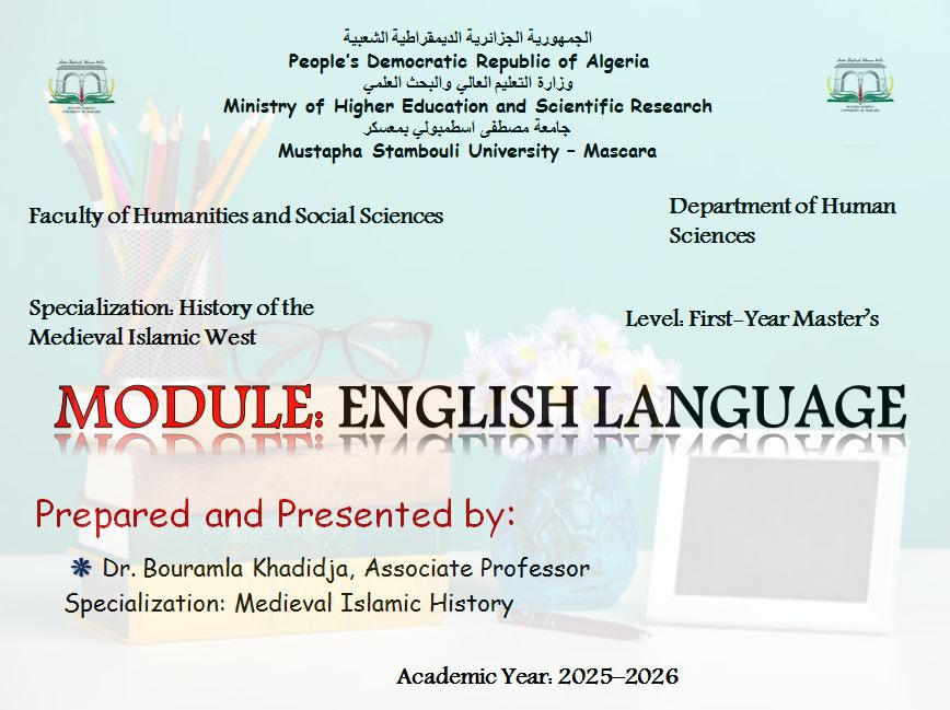 ENGLISH LANGUAGE 2025-2026 Master’s Year 1, Semester 2 BOURAMLA Khadidja